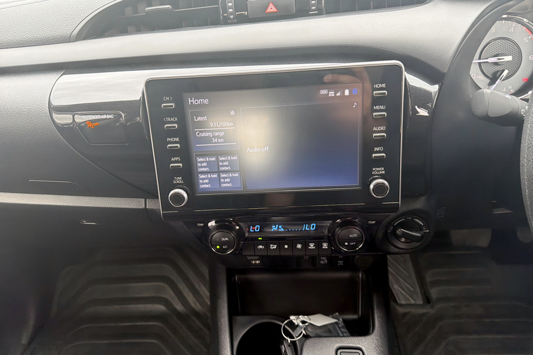 202 Hilux SR 48V. Fitted with Tonneau Cover, 17" Black Alloys, Ute Mat, Bonnet Protector, Weather shields and Tow Bar. Only 32,808 kms. Toyota Certified.